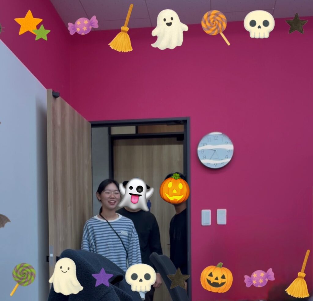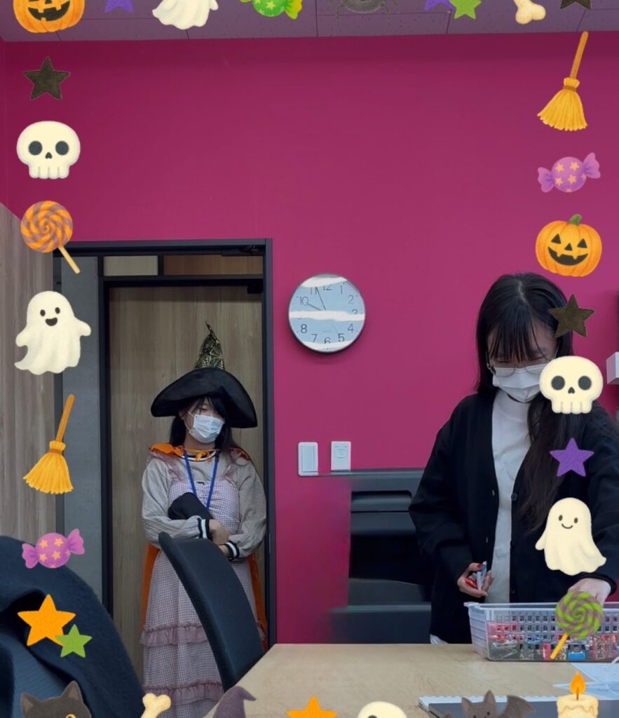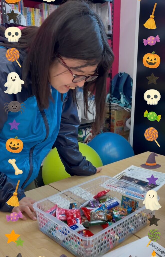 しかしスタッフルームの入口で「ハッピーハロウィン!」とあいさつしに来てくれる学生達に、スタッフも簡単にはお菓子を渡しません(笑)