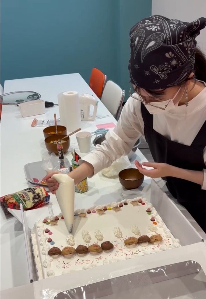 最後はお菓子とフルーツが生クリームの上にたっぷりとデコレーションしてくれたケーキを