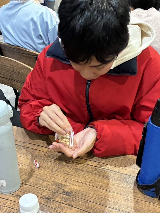 皆で自分の年の数の豆をかぞえておいしくいただきました😋