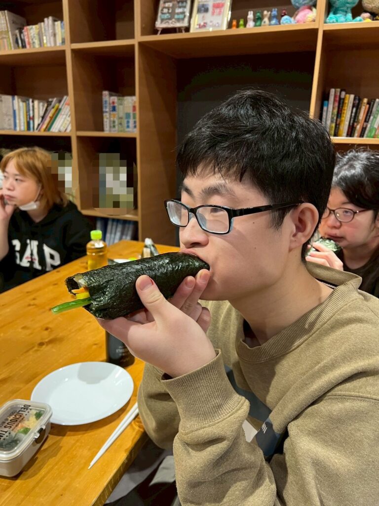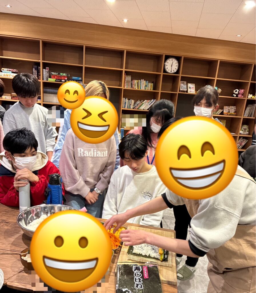 具材を並べて巻くまでのすべてを1人1人の力で行い、海苔巻きが完成!